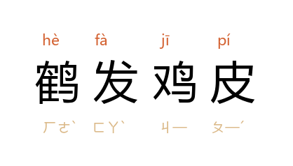 倪璠 注:“鹤髮,白髮也。鸡皮,言其縐也。”
