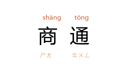 引《初刻拍案惊奇》卷三:“不消説了,是他母子两个商通合计的了。”《二十年目睹之怪现状》第四三回:“继之 商通了隔壁,在十九那天,借他的房子用,在客堂外面天井里,拆了一堵墙,通了过去。”