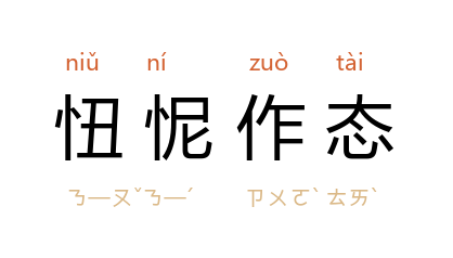 ⒈ 形容不自然,不大方,含羞做作的样子。