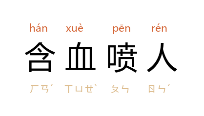 ⒈ 亦作“含血噀人”。亦作“含血潠人”。噀、潠,喷。比喻用恶毒的话诬蔑别人。