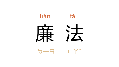 引《周礼·天官·小宰》:“以听官府之六计,弊羣吏之治……五曰廉灋。”郑玄 注:“法,守法不失也。”唐 元稹 《唐故福建等州都团练观察处置使赠左散骑常侍裴公墓志铭》:“在 华 时,会刺史故相 郢 将至,旧法尽取行器於人,公不取给,官司所有粗陈之。其他廉法不挠皆称是。”