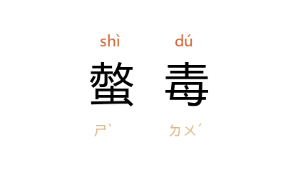 引《韩非子·用人》:“至治之国,有赏罚,而无喜怒,故圣人极;有刑法而死,无螯毒,故姦人服。”《淮南子·俶真训》:“夫忧患之来攖人心也,非直蜂蠆之螫毒。”汉 王褒 《四子讲德论》:“吹毛求疵,并施螫毒。”明 吾丘瑞 《运甓记·手板击凤》:“可惜当筵笑语喧,翻做临岐哭,愿洞鉴微忱,休教被螫毒。”