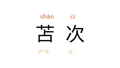 引南朝 梁 徐勉 《梁故侍中司徒骠骑将军始兴忠武王碑》:“频表自陈,反哀苫次。”宋 苏舜钦 《亡妻郑氏墓志铭》:“余时待尽於苫次,退而又哭於室中。”清 蒲松龄 《聊斋志异·长亭》:“既而 石 父病卒,倍益哀伤,因而病惫,苫次弥留,不能受宾朋之弔。”