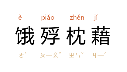 ⒈ 枕藉:交叠而卧。饿死的人纵横交叠,形容饥荒之年的悲惨景象。