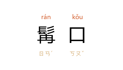 ⒈ 也称口面。传统戏曲演员扮演脚色时所戴假须。因身分、性格不同而种类各异。