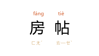 ⒈ (房帖儿)贴在门口或街头的房屋招租启事。