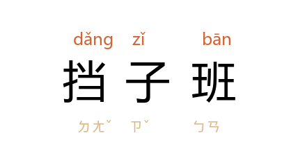 ⒈ 旧时女子卖唱的班子。也称“小班”。按,挡或作“档”。参见〃R皑Q小班”、“档子班”。