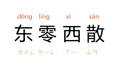 ⒈ 散乱零落。也作「东零西落」、「东零西乱」。