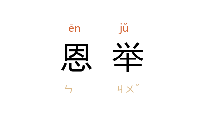 ⒈  恩赐举人。清代凡乡试毕三场而未中式的八十岁以上的士子,分别贡、监生员,合例者请旨赏给举人或举人副榜,称恩举。
