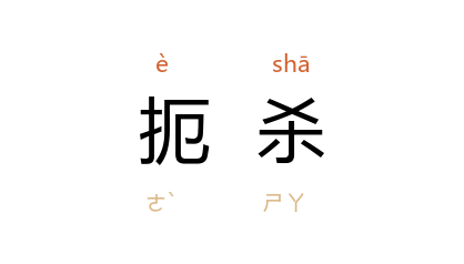 ⒈ 掐住脖子,使窒息而死。比喻摧残、压制发展中的事物。