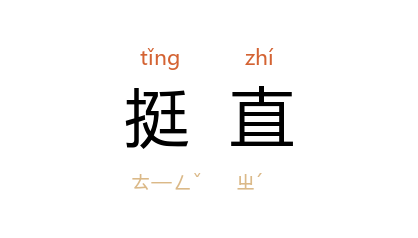 例如:「他挺直的站了很久,却一点儿也不累。」