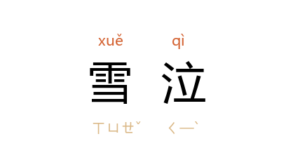 引《吕氏春秋·观表》:“吴起 止於岸门,止车而休,望 西河,泣数行下。其僕谓之曰:‘窃观公之志,视舍天下若舍屣,今去 西河 而泣,何也?’ 吴起 雪泣而应之曰:‘子弗识也。’”高诱 注:“雪,拭也。”南朝 梁 何逊 《七召·声色》:“击哀响,则春臺之人悵焉而雪泣。”唐 李白 《自溧水道哭王炎》诗之一:“有言不可道,雪泣忆兰芳。”