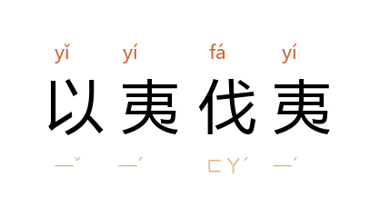 ⒈ 利用外族或外国之间的矛盾,使其互相冲突,削减力量,以便乘其隙而攻伐之。也作「以夷治夷」、「以夷制夷」。