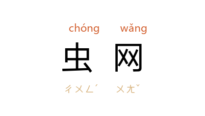 引唐 喻坦之 《归江南》诗:“草晴虫网遍,沙晓浪痕新。”宋 周邦彦 《大酺》词:“润逼琴丝,寒侵枕障,虫网吹粘帘竹。”