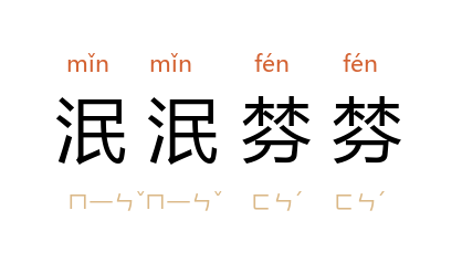 注音ㄇ一ㄣˇ ㄇ一ㄣˇ ㄈㄣˊ ㄈㄣˊ