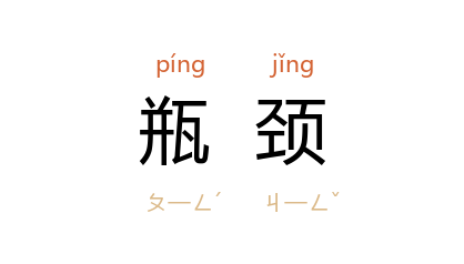 ⒈ 本指瓶口下方细长似颈的部分,后引申在任何工作中所遭遇的阻碍,以致影响事物的顺畅。