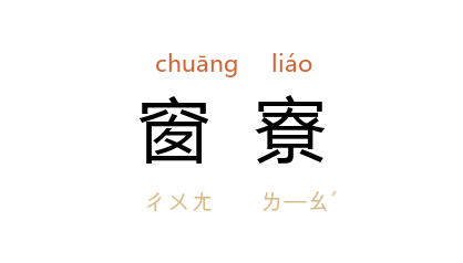 引南朝 梁 简文帝 《祠伍员庙》诗:“窗寮野雾入,衣帐积苔生。”《金瓶梅词话》第十三回:“原来大人家有两层窗寮,外面为窗,里面为寮。”