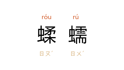 引《晋书·冯跋载记》:“蝚蠕 勇斛律,遣使求 跋 女伪 乐浪公主。”清 钱大昕 《廿二史考异·晋书五·冯跋载记》:“﹝ 蝚蠕 勇斛律,﹞ 蝚蠕 即 柔然 也,《魏书》作 蠕蠕,《宋(书)》、《齐(书)》、《梁书》皆作 芮芮,《周书》作 茹茹,《北史》有《蠕蠕传》,而诸传閒有作 茹茹 者,盖译音无定字。”