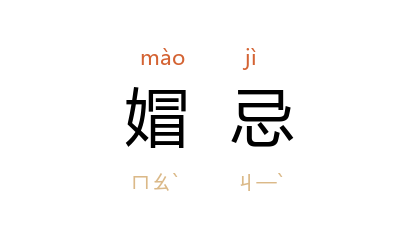 引《新唐书·房玄龄传》:“无媢忌,闻人善,若己有之。”宋 无名氏 《梅妃传》:“议者谓或覆宗,或非命,均其媢忌自取。”宋 叶适 《朝议大夫王公墓志铭》:“然揣摩者私料公厚 钱 甚,媢忌者因掎公以撼 钱。”