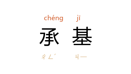 引《文选·袁宏·三国名臣序赞》:「然则三五迭隆,历世承基,揖让之与干戈,文德之与武功。」》文选·干宝《晋纪总论》:「世宗承基,太祖继业。」