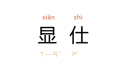 引宋 欧阳修 《相州昼锦堂记》:“自公少时,已擢高科,登显仕,海内之士闻下风而望餘光者,盖亦有年矣。”清 曾国藩 《葛寅轩先生家传》:“孝廉方正之科,詔开六七次,而由之以践歷显仕者特少。”
