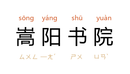 ⒈ 位于河南省登封县太室山的南麓。五代周时所建,初称为「太室书院」。宋改名,与睢阳、白鹿、岳麓号称为「四大书院」。