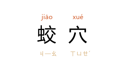 ⒈ 蛟龙穴居之处。 明 王士性 《广志绎·江南诸省》:“然 江 右所称蛟蹟非一,如 丰城 城东西有二蛟穴,其中积水,四时不竭,旧传蛟精常蛰於此, 旌阳 以符呪逐之。
