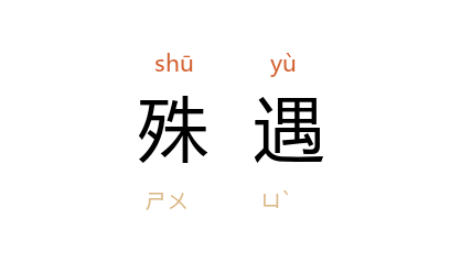 ⒈  特别的恩遇。多指帝王的恩宠、信任:盖追先帝之殊遇,欲报之于陛下也。