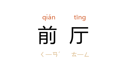⒈ 位于通往主要房间前面的房间或门厅,可作会客接待室。