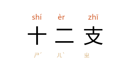 英语the 12 earthly branches 子, 丑, 寅, 卯, 辰, 巳, 午, 未, 申, 酉, 戌, 亥 (used cyclically in the calendar and as ordinal number)