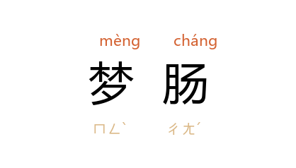 ⒈ 《文选·扬雄〈甘泉赋〉》题解李善注引汉·桓谭《新论》:“雄作《甘泉赋》一首,始成,梦肠出,收而内之,明日遂卒。”后用“梦肠”形容写作构思之苦。传说三国·吴·孙坚之母,梦肠出而生坚。遂以“梦肠”为生贵子的吉兆。