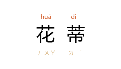 引南朝 齐 王融 《拟古》诗之一:“花蔕今何在,亦是林下生。”唐 张九龄 《庭梅咏》:“更怜花蒂弱,不受岁寒移。”叶圣陶 《友谊》:“她说校园里的西红柿结果了……长得真快,上个星期还只见花蒂呢。”
