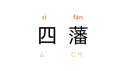 引《隋书·卷一一·礼仪志六》:「东西南北四藩诸国王章,上藩用中金,中藩用银。」唐·杜甫〈客居〉诗:「儒生老无成,臣子忧四藩。」