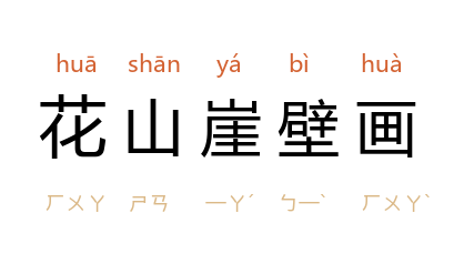 ⒈ 在广西壮族自治区宁明县花山、左江沿岸峭壁上。画面长达170米,高44米。以人像为主,大的高3米余,小的约30厘米,约有一千三百个。同时还有兽类、铜鼓、铜锣等形象,皆赭色,形象生动。为全国重点文物保护单位和全国重点风景名胜区。