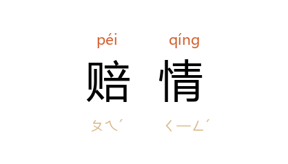 引王安友 《李二嫂改嫁》:“﹝ 张大娘 ﹞忽的听见有人叫娘,开始认为媳妇来给她赔情哩。”赵树理 《三里湾·惹不起遇一阵风》:“因为他们三个深深知道 满喜 这个特点,所以都赶上来向他赔情道歉。”