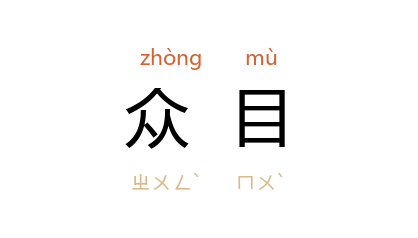 引晋 陆机 《五等诸侯论》:“譬犹众目营方,则天网自昶。”唐 张籍 《赠殷山人》诗:“满堂虚左待,众目望乔迁。”宋 曹勋 《远游篇》:“众目宝康瓠,明月难暗投。”