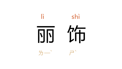 引《后汉书·班固传下》:“去后宫之丽饰,损乘舆之服御。”南朝 梁 柳恽 《咏席诗》:“罗袖少轻尘,象床多丽饰。”清 吴嘉宾 《得一斋记》:“虽奇巧丽饰,值以千亿,曾不如工之有缺斤,农之有曲耒也。”