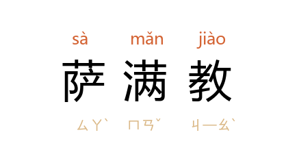 ⒈ 崇拜自然、精灵,并以能与精灵沟通的灵媒萨满为中心的宗教。相信众天体均有神灵居住,只有萨满能直接与之沟通,因此萨满亦具有治病及预卜未来的能力,集巫术、符咒、及自然信仰而成。多流行于以狩猎、采集为生的原始民族之间,主要信仰者为北亚乌拉阿尔泰一带的沃古尔、奥斯加克、萨莫耶德、通古斯等民族。