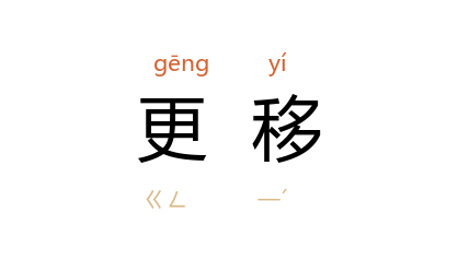 引宋 曾巩 《太平州与本路转运状》:“伏念更移岁序,阻越道途。”清 姚燮 《双鸩篇》诗:“一饥一饱与郎共,山崩川竭无更移。”蒋光慈 《我要回到上海去》诗:“这半年啊!我固然奔波瘦了, 上海 的景象也有许多更移的。”