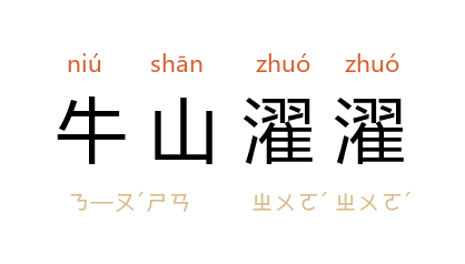 ⒈ 濯濯:光秃,无草木的样子。牛山上光秃秃的。形容寸草不生的荒山。