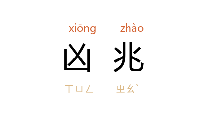 引《再生缘》第二七回:“今朝相请非兇兆,往日情由不用提。”李季 《报信姑娘》诗:“今年的风沙劲头特别大,就象什么凶兆,整天里天昏地暗。”