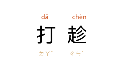 引宋 晓莹 《罗湖野录》卷二:“戒 曰:‘上人名甚么?’对曰:‘ 齐岳。’ 戒 曰:‘何似 泰山 ?’ 岳 无语, 戒 即打趁。”《景德传灯录·宣鉴禅师法嗣·资国和尚》:“师凡遇僧来,亦多以拄杖打趁。”