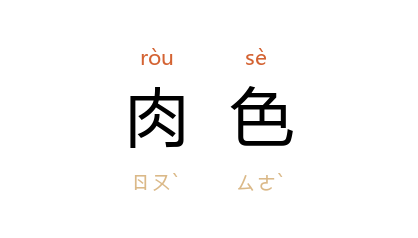 引唐 王建 《题所赁宅牡丹花》诗:“粉光深紫腻,肉色退红娇。”冰心 《我们太太的客厅》:“下面是肉色袜子,黄鹿皮高跟鞋。”