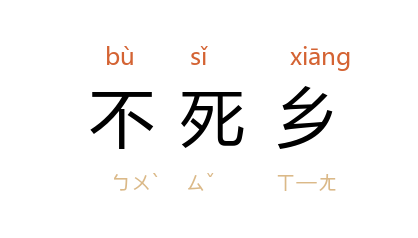 引唐 祝元膺 《寄道友》诗:“两頷凝清露,玉炉焚天香。为我延岁华,得入不死乡。”唐 张祜 《游天台山》诗:“但造不死乡,前劳何足数。”