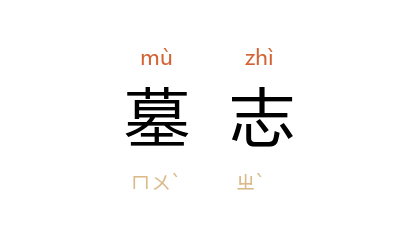 ⒈ 放在墓里刻有死者生平事迹的石刻,分上下两层:上层曰盖,下层曰底,底刻志铭,盖刻标题。亦指墓志上的文字。