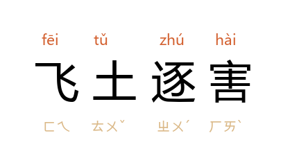 引汉 赵晔 《吴越春秋·勾践阴谋外传》:“孝子不忍见其父母为禽兽所食,故作弹以守之,絶鸟兽之害。故歌曰‘断竹续竹,飞土逐害’之谓也。”亦作“飞土逐肉”。 清 纪昀 《阅微草堂笔记·滦阳续录五》:“夫飞土逐肉,儿戏之常。”