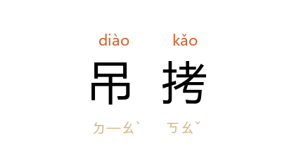 引《元典章·兵部三·押运》:“动将捕盗官吏打駡,及将弓兵人等弔拷,剥脱衣服。”《警世通言·金令史美婢酬秀童》:“原来《大明律》一款,捕盗不许私刑弔拷。”清 黄六鸿 《福惠全书·刑名·审盗》:“拿到真贼,只宜听官审问,不可预先私行弔拷。”