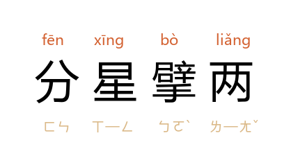 引《刘知远诸宫调·知远走慕家庄沙佗村入舍》:“便分星百(擘)两,道俺不姓 慕容。”元 高文秀 《大劫牢》头折:“今日箇辞却 宋公明,我又索行色添凄愴,何须要分星擘两。”
