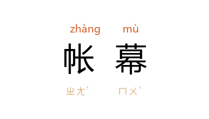引唐 雍陶 《赠金河戍客》诗:“戍远旌幡少,年深帐幕低。”唐 李宣远 《塞下曲》:“帐幕遥临水,牛羊自下山。”《水浒传》第三一回:“先去大寨两边帐幕里,预先埋伏了军士,厅上虚设着酒食筵宴。”