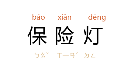 引《官场现形记》第三二回:“嫌挂的保险灯不亮,又叫人特地点了一支洋烛。”郁达夫 《迟桂花》:“则生,你这孩子真象是疯了,快立起来,把那盏保险灯点上。”